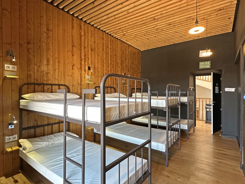 - 34 plazas de albergue: 3 habitaciones de 6, 1 habitación de 4 y 1 habitación de 12.