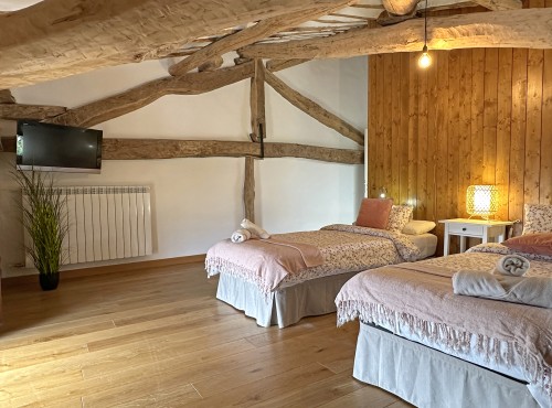 - 5 habitaciones dobles que se pueden convertir en triples o cuádruples: 10 plazas más 8 (supletorias)