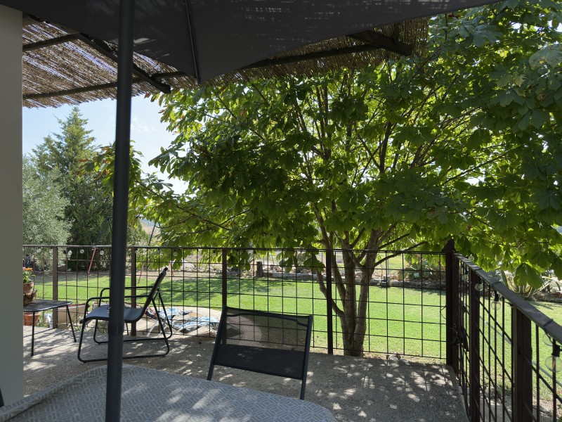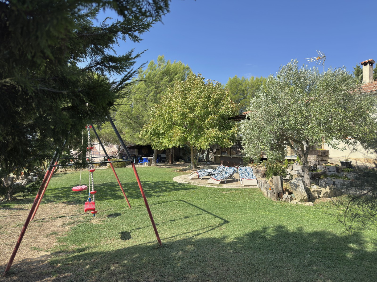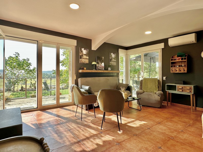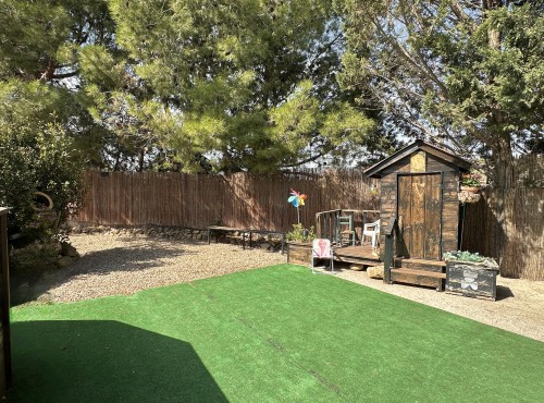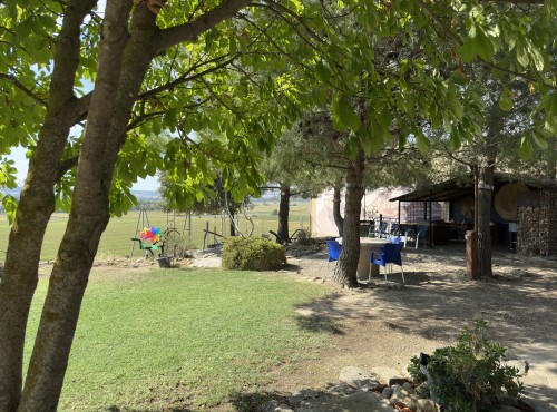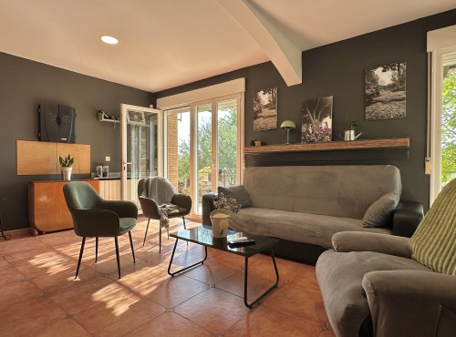 De nuestra zona exterior destaca especialmente el jardín de 1000m2, así como los juegos de exterior destinados a los más pequeños (casitas de madera), y las magníficas vistas del entorno de las que pueden disfrutar todos nuestros huéspedes.