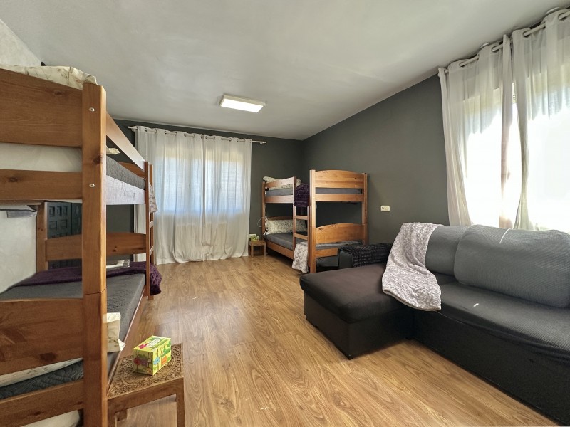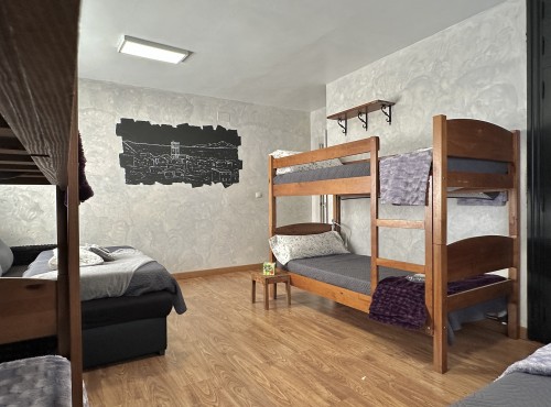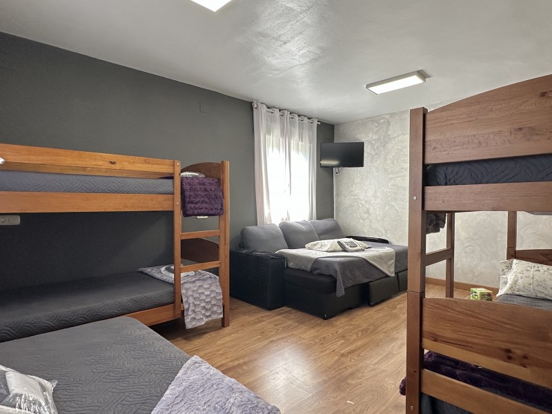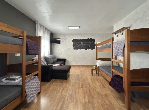 - Habitación grande de las literas: 4 camas individuales de tipo litera, posibilidad de añadir hasta 2 supletorias.