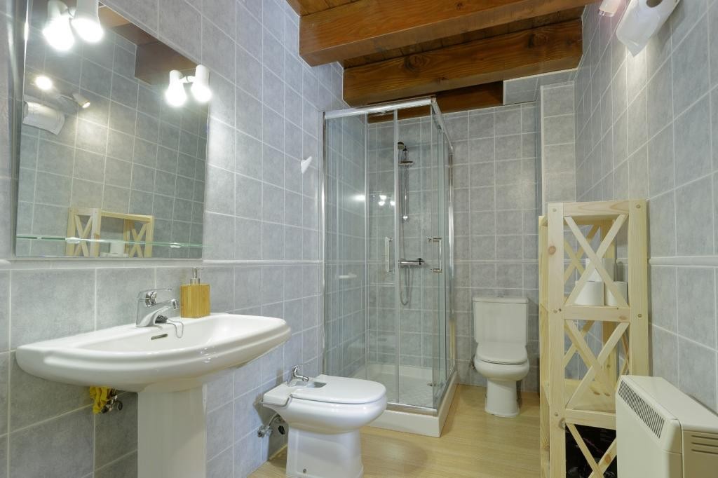 - Baño con secador y plancha de pelo, toallas y dispensador de jabón de manos