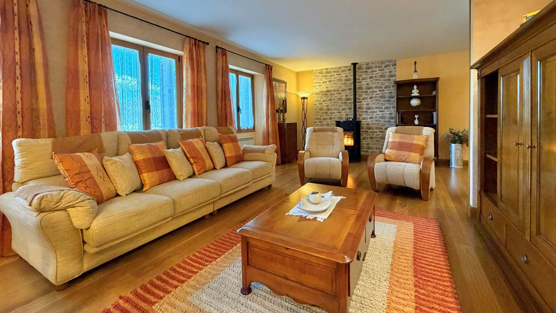 Esta vivienda tiene capacidad de 6 personas con la posibilidad de sumar una cama supletoria, así como una cuna. La casa está distribuida en 3 plantas y ocupa la parte delantera de la casa con una orientación al este.