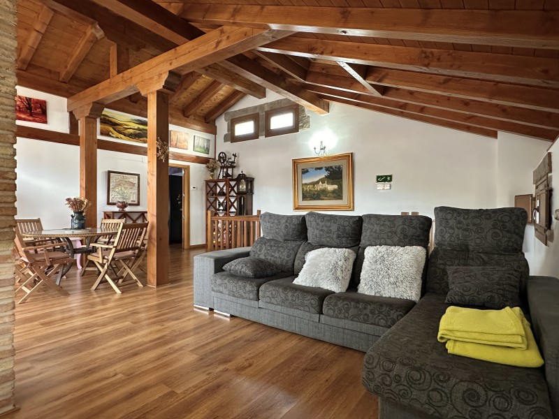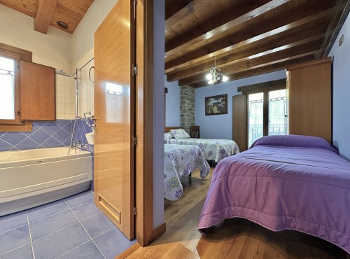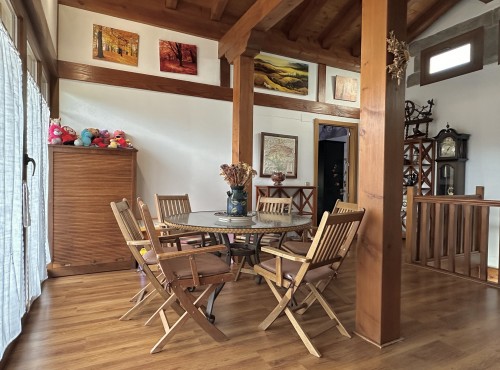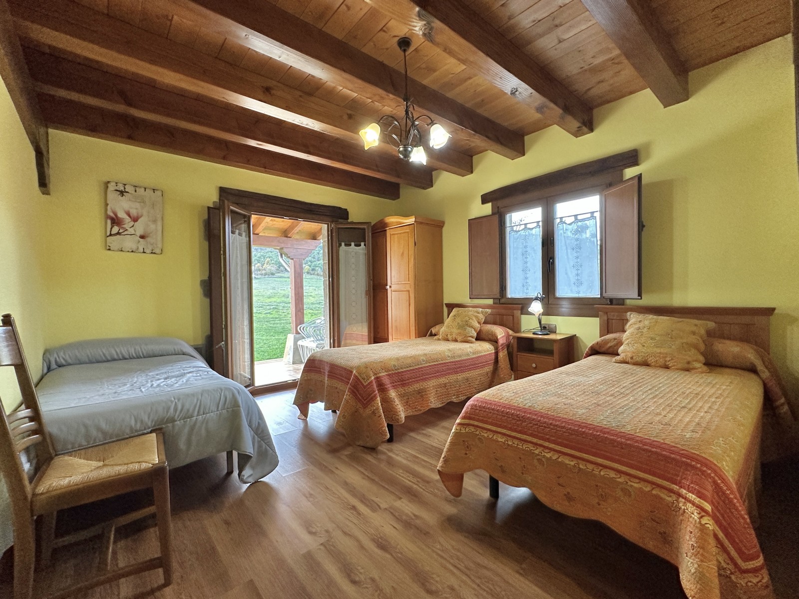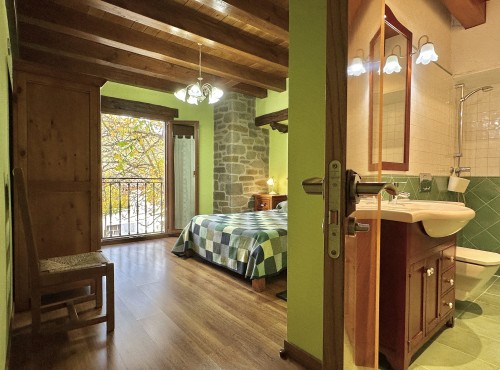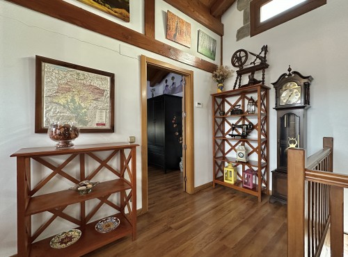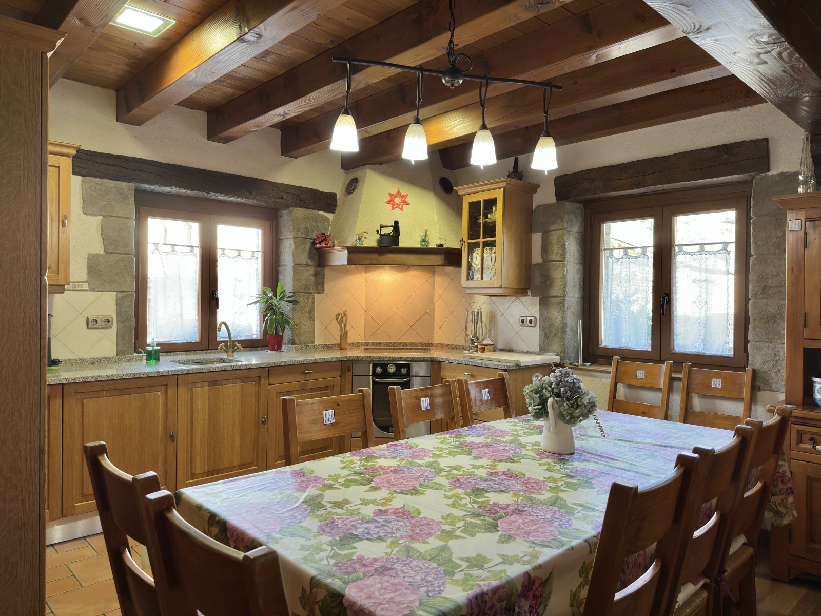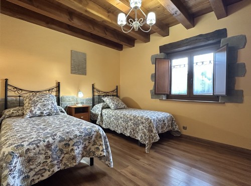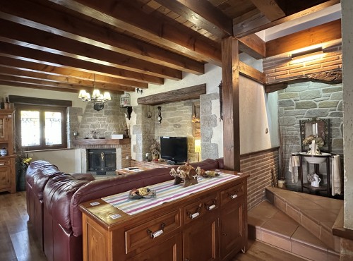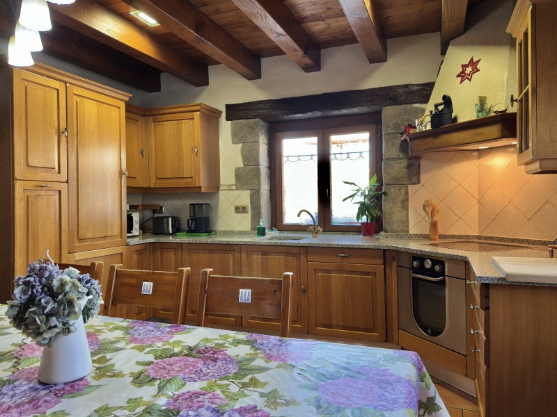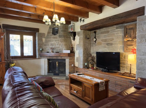 La casa se distribuye en tres plantas: planta baja, primera planta y entrecubierta. En la planta baja se encuentra un zaguán de entrada, comedor-sala de estar, cocina, sala de calderas (calefacción central de combustible sólido, pelet, con suelo radiante y ACS) y una habitación doble con baño, adaptado para personas con movilidad reducida. El salón dispone de chimenea, TV, DVD e internet WIFI.
