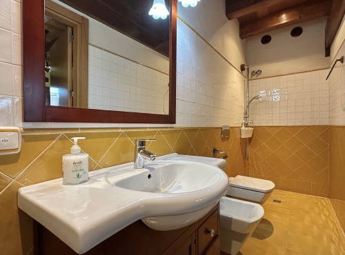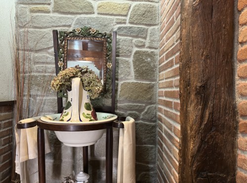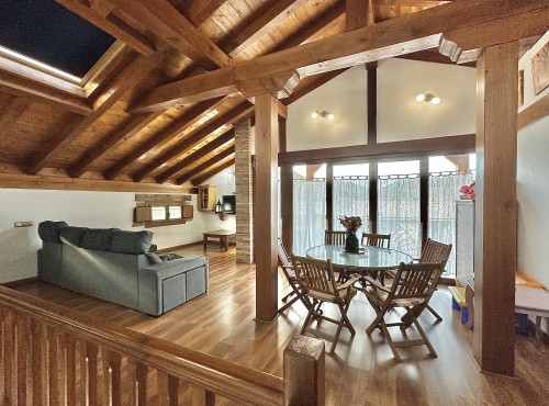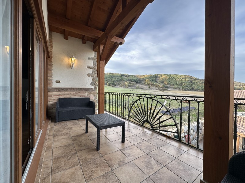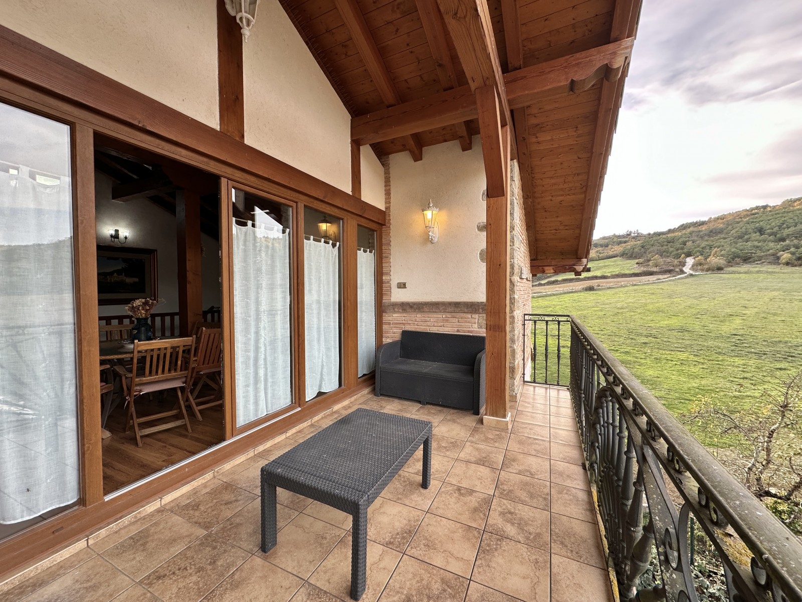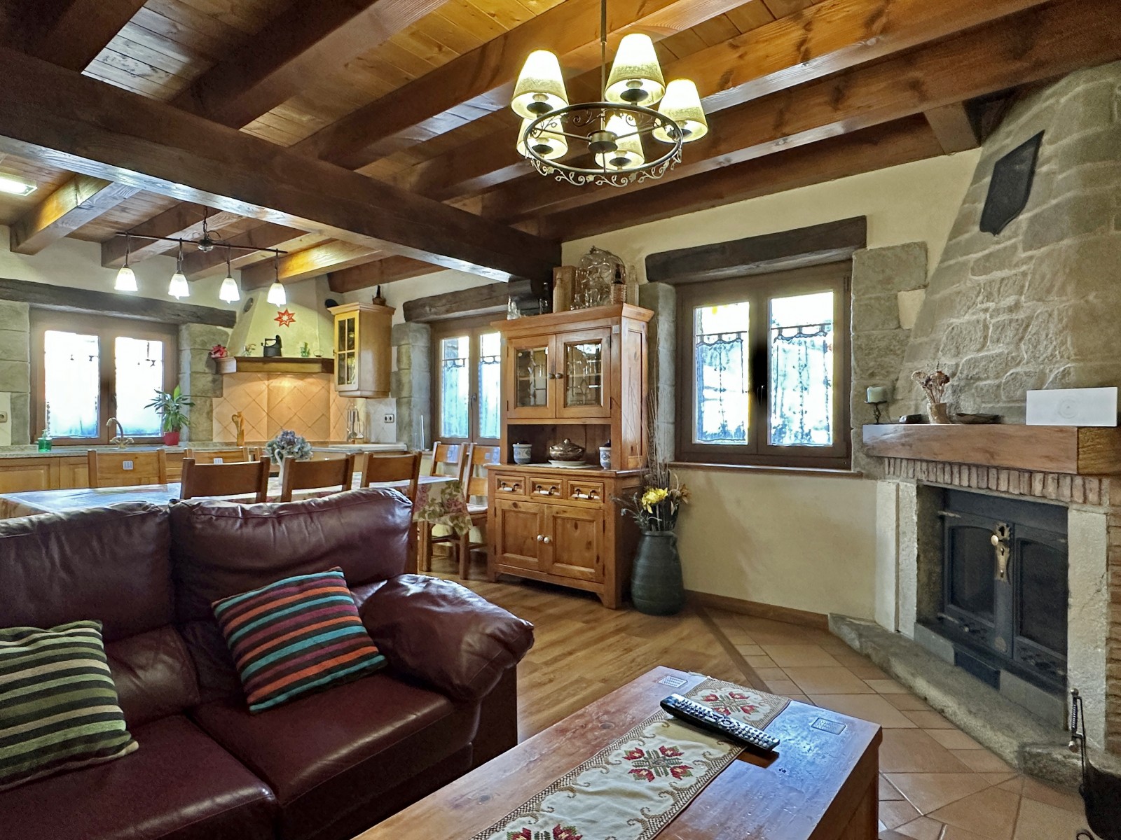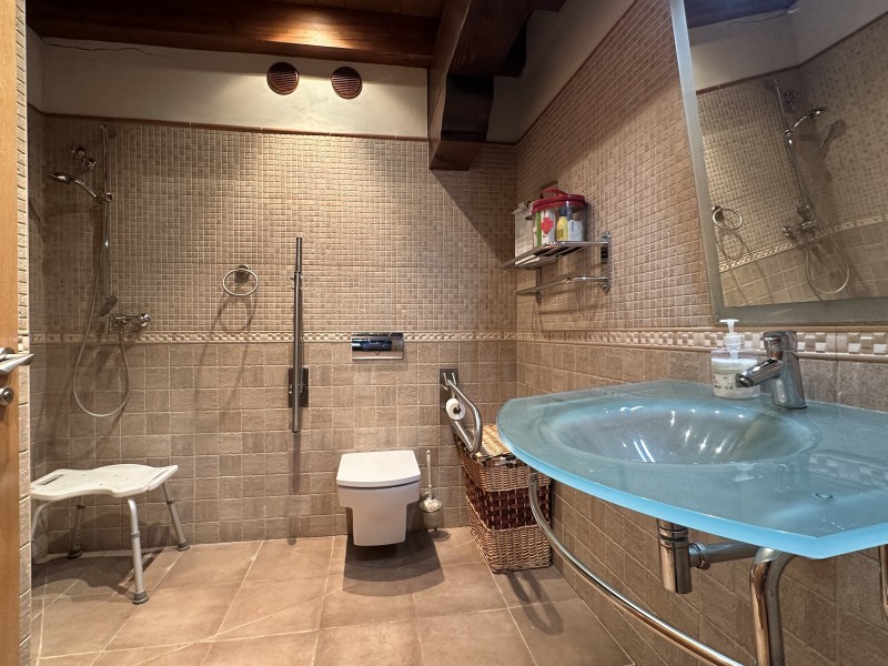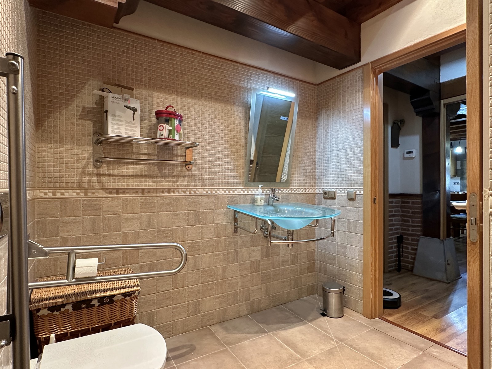 La casa se distribuye en tres plantas: planta baja, primera planta y entrecubierta. En la planta baja se encuentra un zaguán de entrada, comedor-sala de estar, cocina, sala de calderas (calefacción central de combustible sólido, pelet, con suelo radiante y ACS) y una habitación doble con baño, adaptado para personas con movilidad reducida. El salón dispone de chimenea, TV, DVD e internet WIFI.