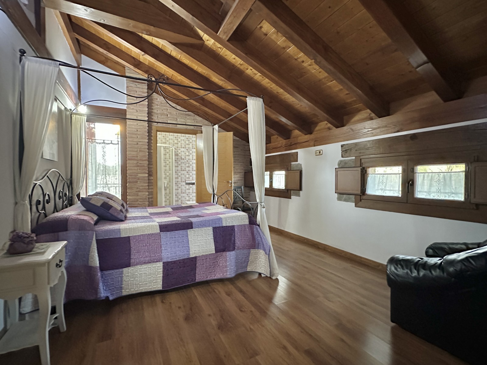 En la primera planta se encuentran dos habitaciones dobles y una de matrimonio todas ellas disponen de baño completo. Desde esta planta se accede a un porche cubierto, junto con una zona ajardinada con mesas de picnic y una barbacoa. En la entrecubierta se sitúa una habitación de matrimonio con baño y una gran sala de 35 metros, la cual se utilizará como zona de ocio, con un gran balcón mirador.