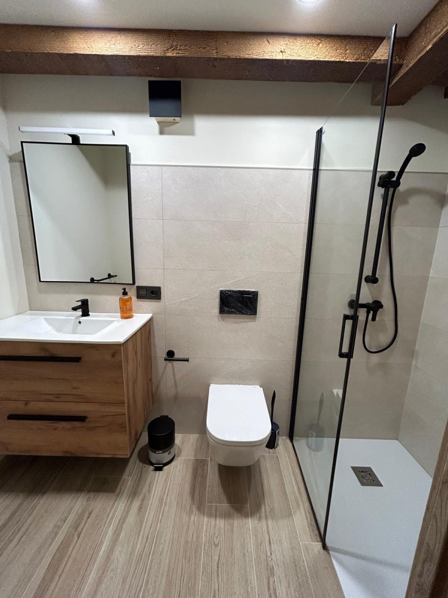 En la planta baja encontrarás un acogedor zaguán que da paso a un amplio espacio abierto donde se integran el salón, el comedor y la cocina, creando un ambiente cálido y perfecto para disfrutar en grupo. En esta misma planta se sitúa además un dormitorio accesible con baño adaptado, un aseo y una terraza ideal para relajarse al aire libre.