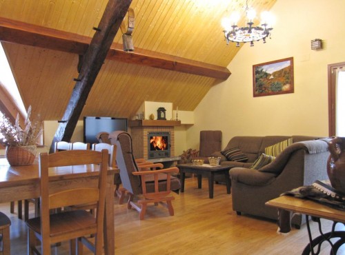 La casa tiene un amplio salón rústico, con chimenea y TV-DVD. Dispone de una cocina totalmente equipada (lavadora, lavavajillas, microondas, horno). Tiene cinco habitaciones dobles, cada una de ellas con su baño y además un aseo común.