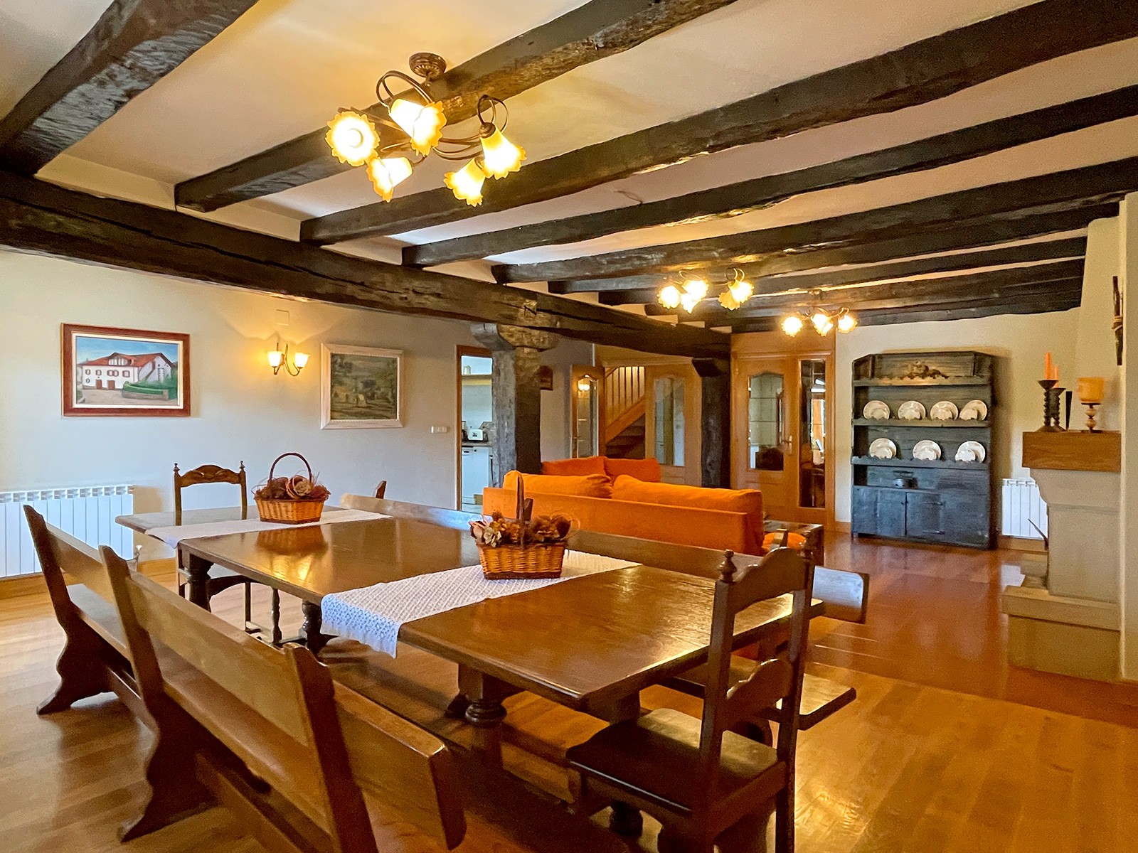 * Amplio salón ?comedor equipado con chimenea de leña, sofás, TV, DVD y mesa con sillas para 16 comensales.