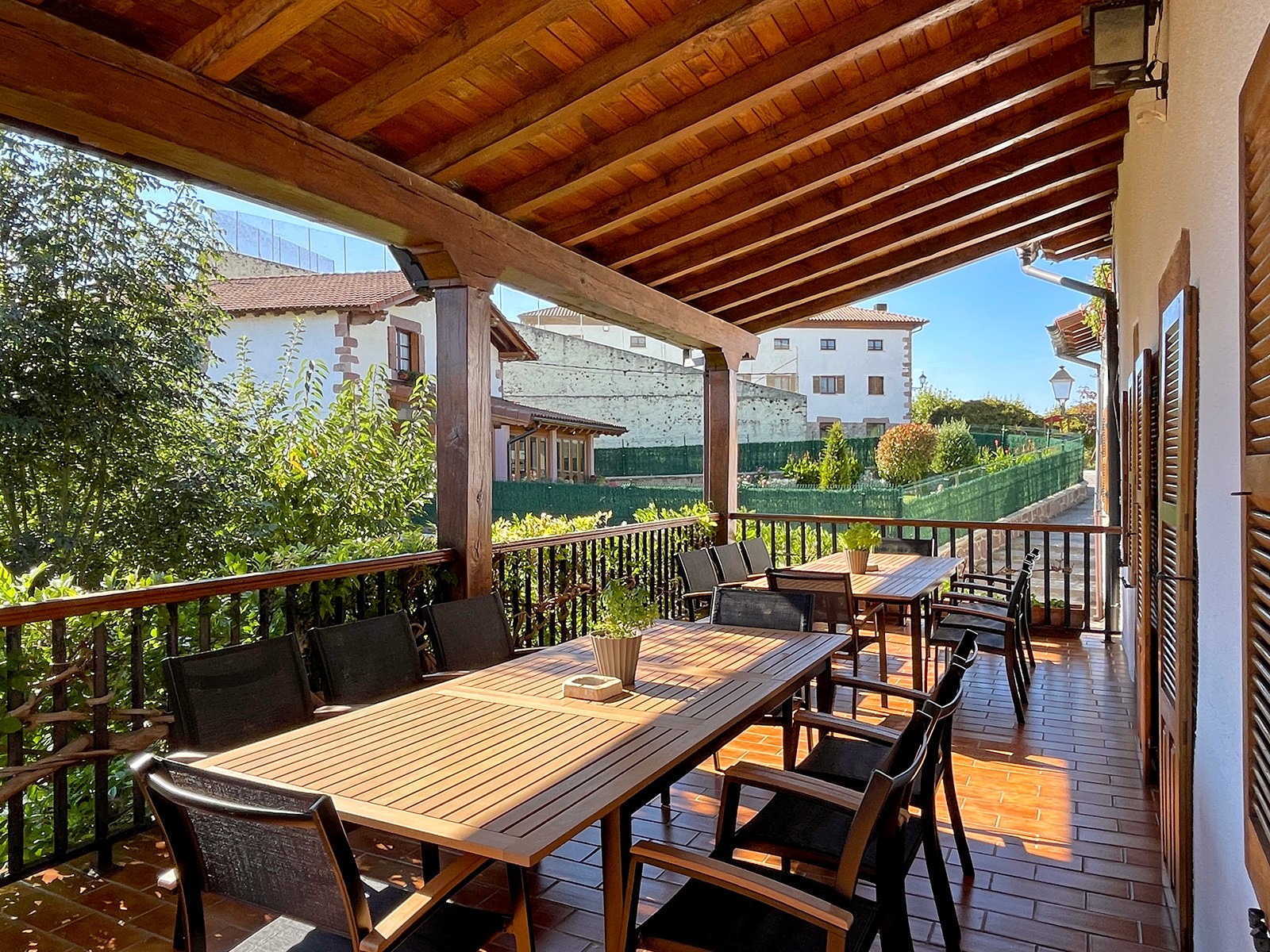 * Espaciosa terraza cubierta exterior equipada igualmente con mesas y sillas para 16 comensales.