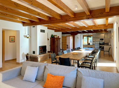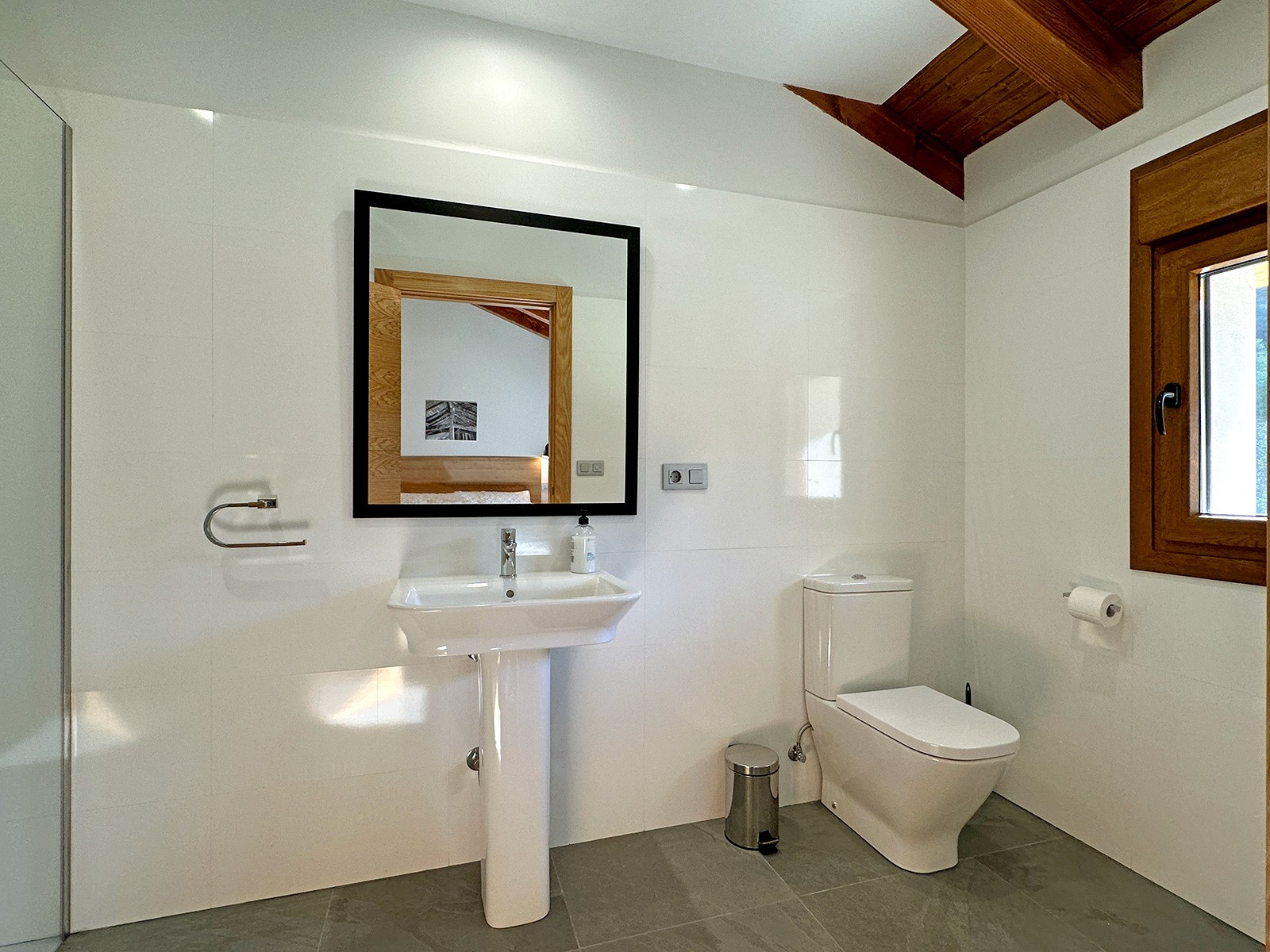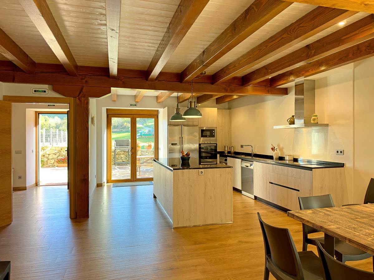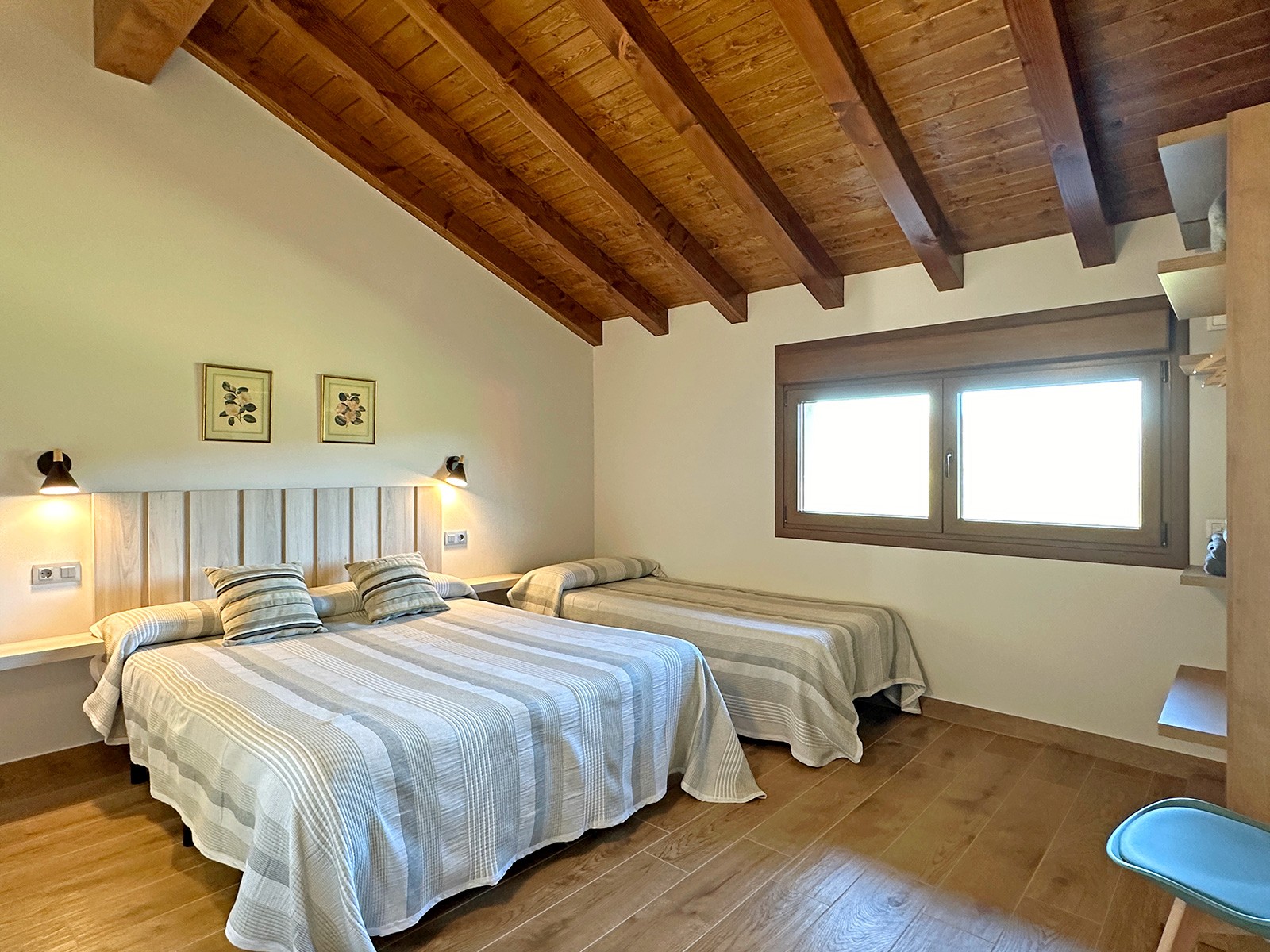 Casa con capacidad para 18 personas totalmente reformada, se compone de 9 habitaciones y 9 baños. Cuenta con una amplia cocina completamente equipada, salón-comedor con mesa para 18 personas y sala de juegos.