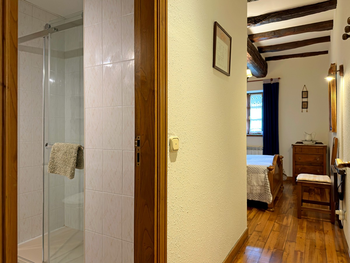 Casa tradicional de piedra restaurada en la planta baja con entrada independiente a la vivienda de los propietarios, cuenta con 6 habitaciones dobles con baños incorporados 2 de 2 camas y 4 de matrimonio, cocina completa , salón- comedor, con televisión, video, DVD, de uso exclusivo de clientes, aseo.