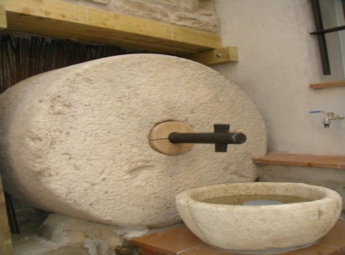 Bueno, pues durante la reconstrucción de la casa han aparecido dos pruebas que confirman la existencia de ese trujal. La primera de ellas es una parte de una prensa de aceite (Ya os explicare más adelante como eran estas prensas hace más de 200 años). La otra es una piedra de molino que se utilizaba para triturar la aceituna antes de prensarla.