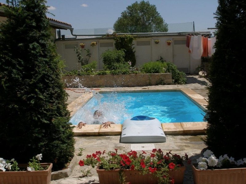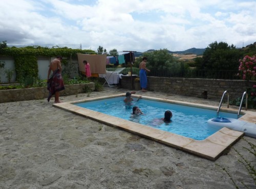 Los propietarios vivimos en un anexo al edificio que da a la piscina, y compartimos la entrada de la casa con todos los apartamentos.