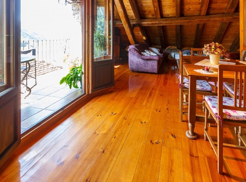 Distribución * Segunda Planta: 2 habitaciones dobles con baño y otra doble con baño propio fuera de la habitación. * Tercera planta: salón abuhardillado con chimenea y TV exclusivo para clientes y terraza cubierta.