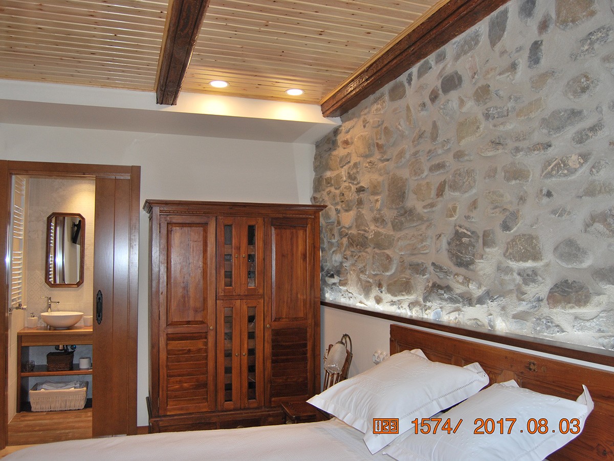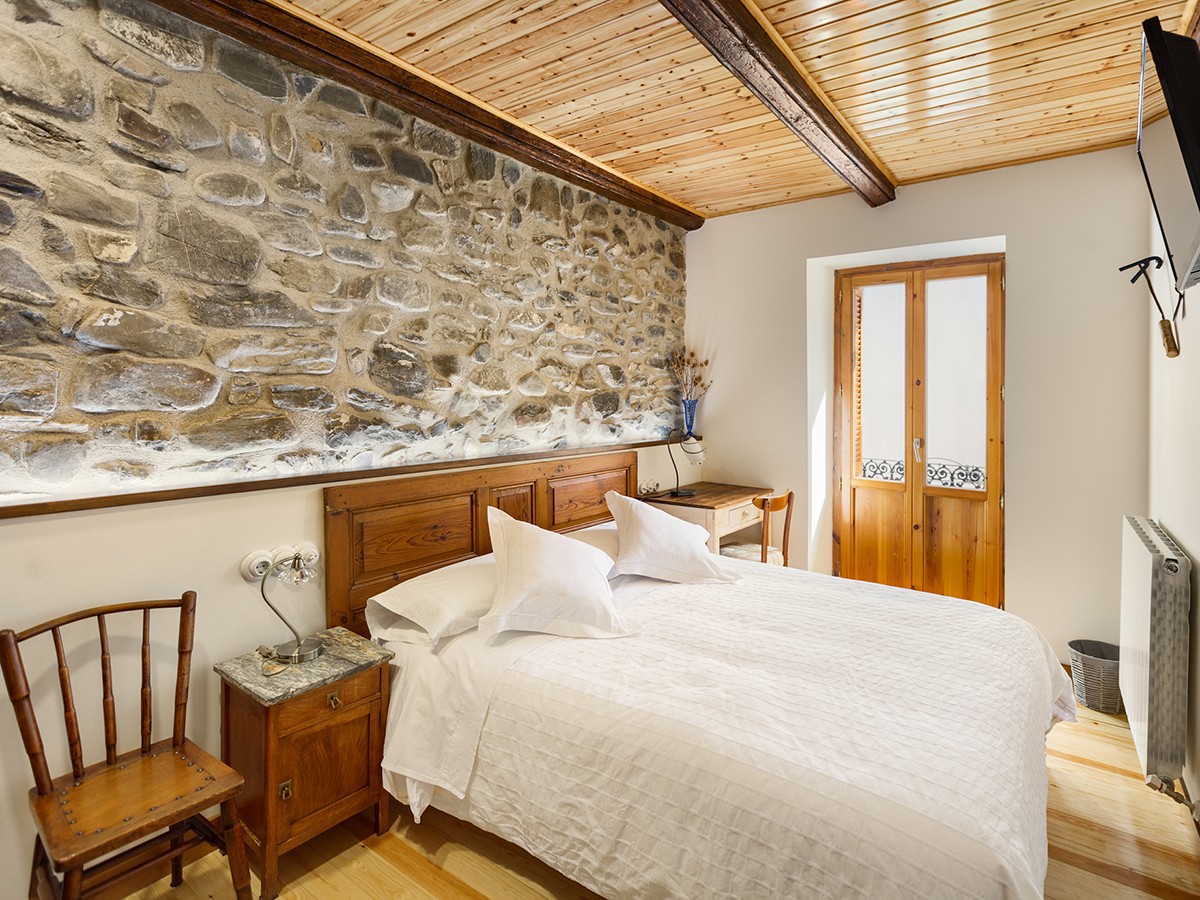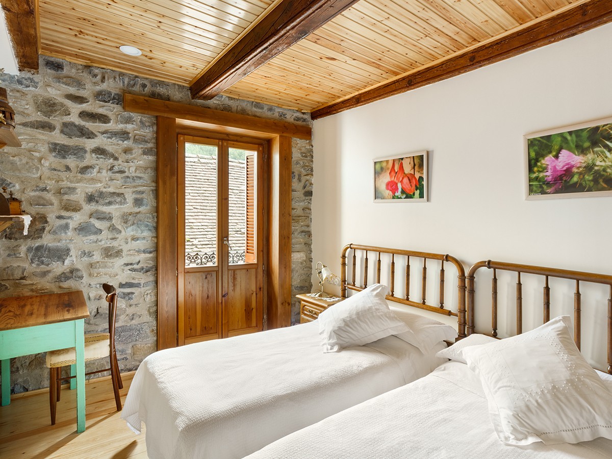 Segunda planta: Tres habitaciones dobles cuidadosamente decoradas con piedra original vista cada una con su baño privado. Dos de ellas de cama matrimonio y la otra de dos camas.
