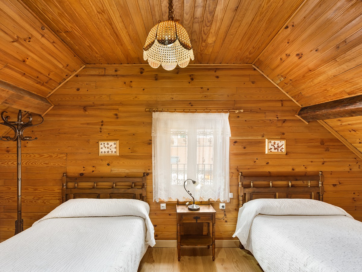 Buhardilla: Dos habitaciones dobles , una de cama matrimonio y la otra de dos camas y un baño. Aislamiento ecológico y suelo de madera de roble. Mobiliario antiguo y de roble macizo.