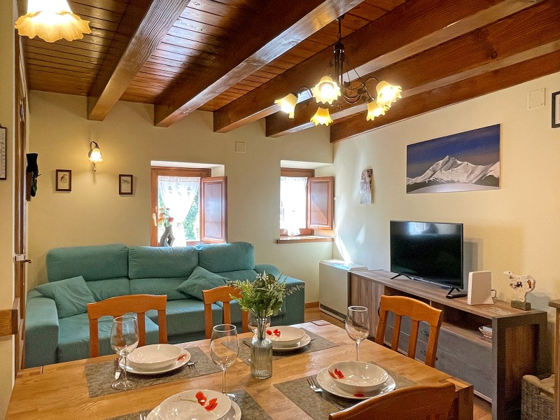 - Cocina-salón, totalmente equipada con microondas, frigorífico, lavavajillas, tostadora, exprimidor, sartenes, vajilla? El salón incluye Smart Tv, sofá, mesa de comedor y sillas.