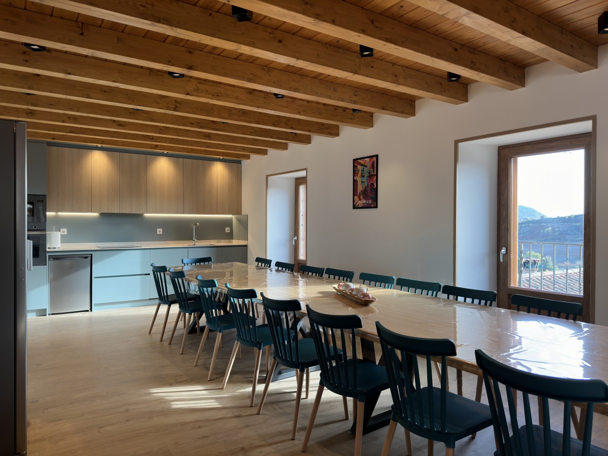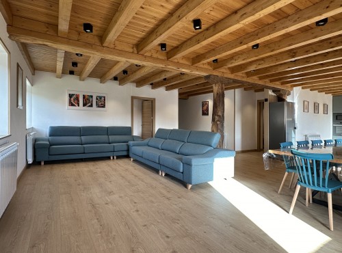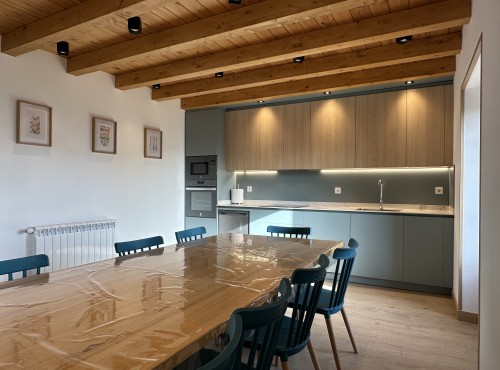 Casa rural para capacidad de 21 personas totalmente reformada, se compone de 7 habitaciones, todas ellas con baño propio además de otro aseo de uso comunitario. Cuenta también con dos salas de estar, una principal con capacidad para hasta 24 comensales y otro secundario para relax o para uso de niños con salón de juegos, los dos salones con televisión.