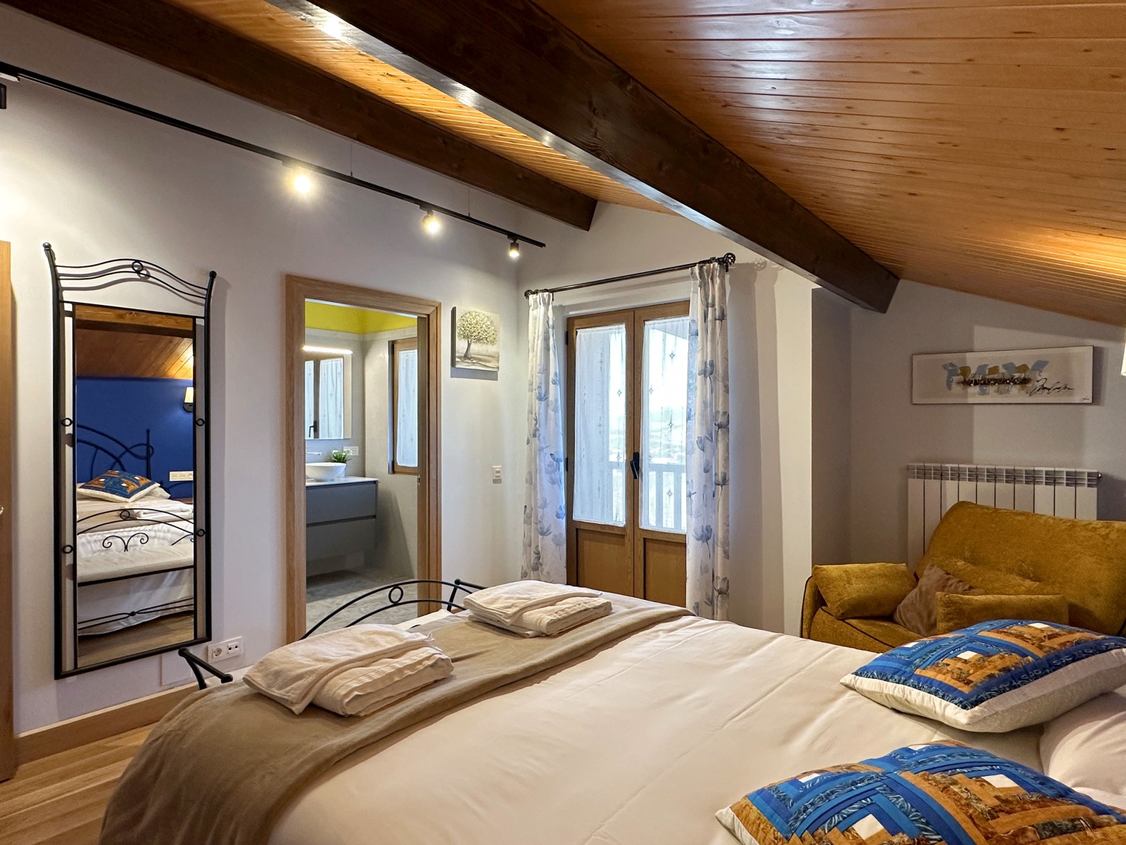 Por último, la última habitación posee de dos camas de 90cm. Su ventana cenital posibilita ver el cielo estrellado del pueblo.