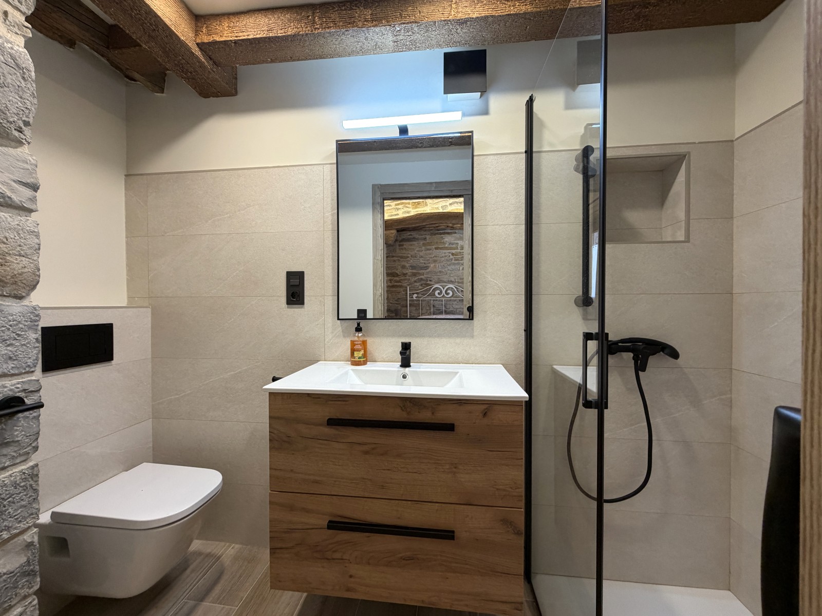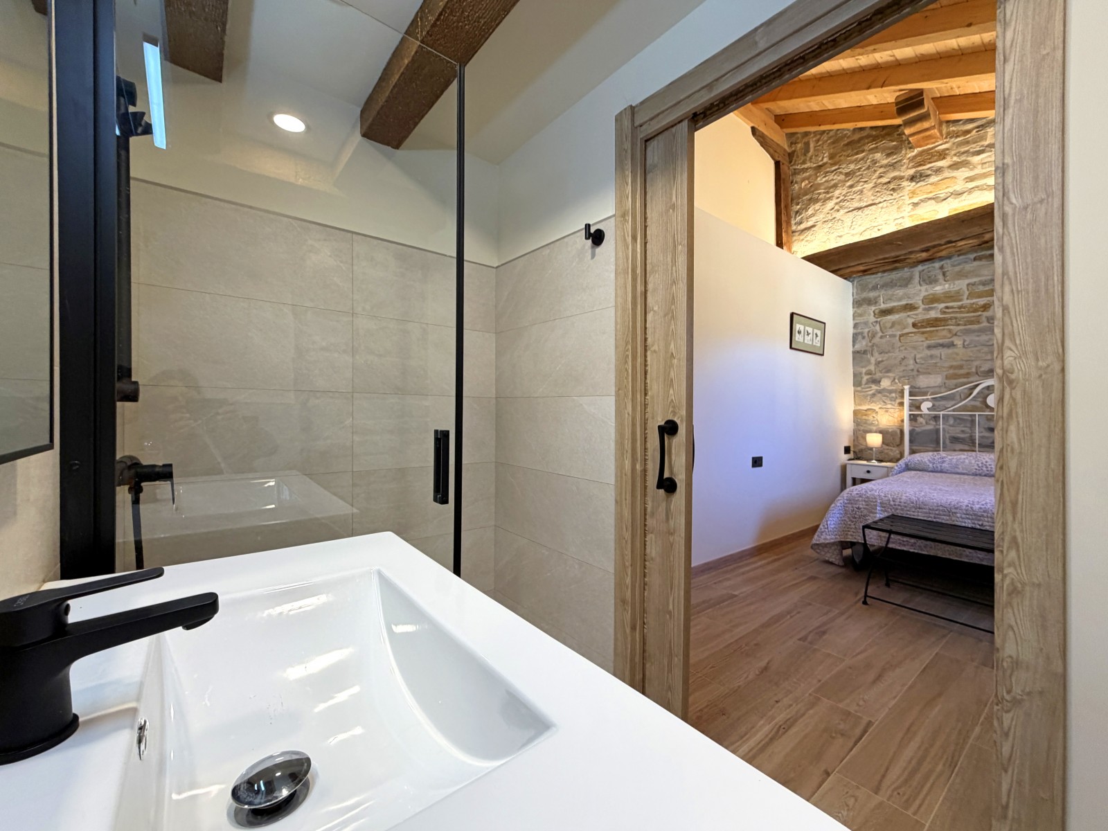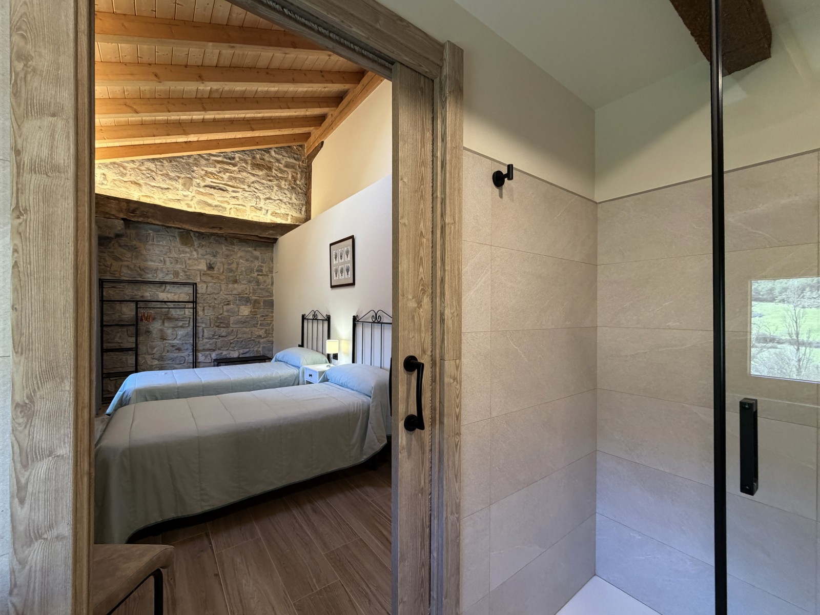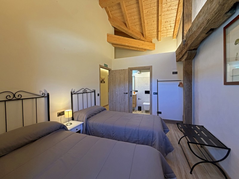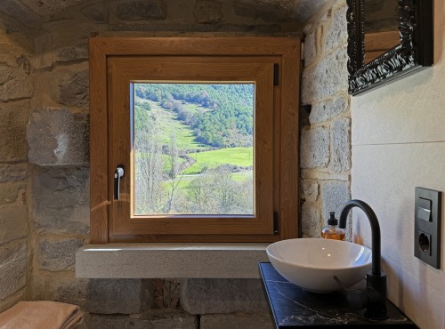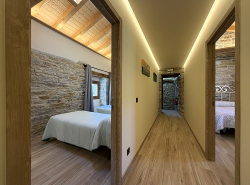 En la planta superior se distribuyen cuatro confortables dormitorios, cada uno con su propio baño, y un espacio de distribución que aporta amplitud y luz natural. Un lugar pensado para descansar, desconectar y disfrutar del entorno rural con todas las facilidades.
