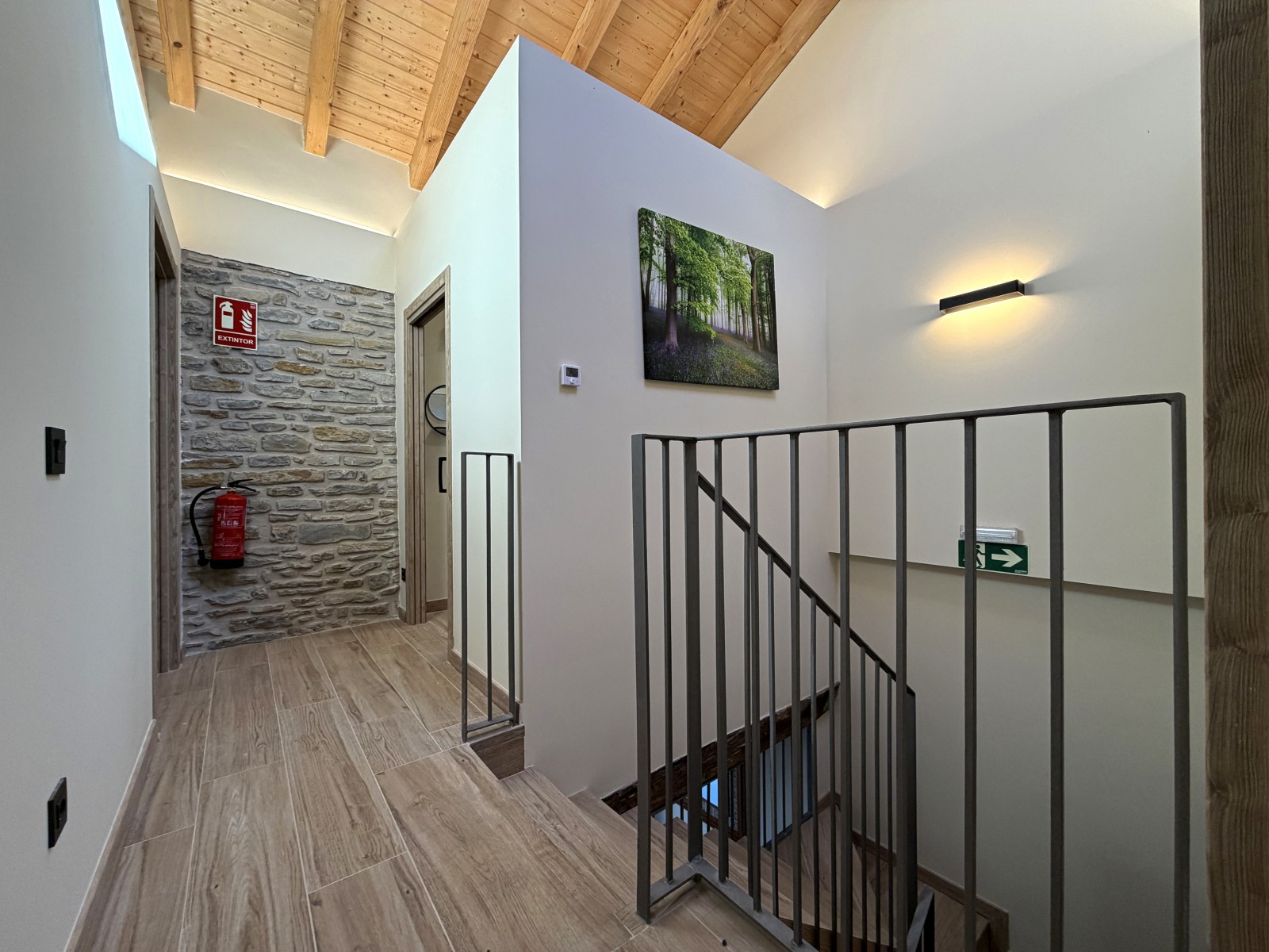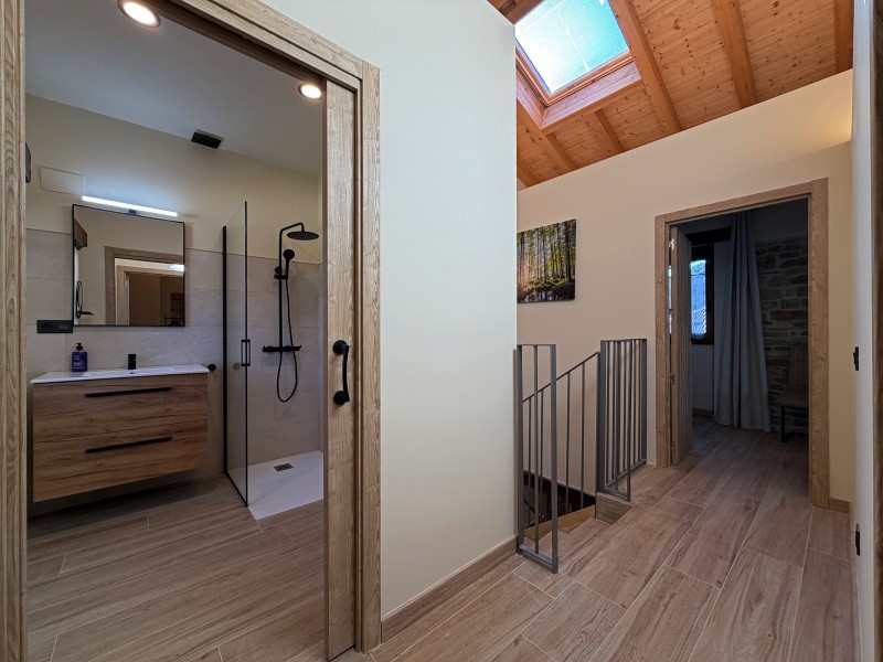 Subiendo a la planta superior, descubrirás dos dormitorios adicionales, un baño completo y un distribuidor que aporta amplitud y luz natural. Desde esta planta también se accede a una encantadora terraza cubierta, un rincón perfecto para relajarse, disfrutar de las vistas y vivir la calma del entorno rural.