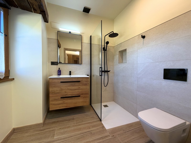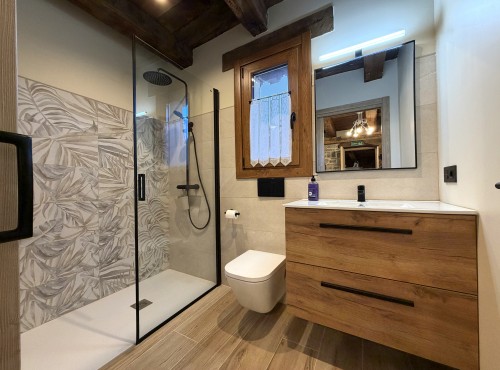En la planta baja encontrarás un espacio abierto que integra el salón, el comedor y la cocina, creando un ambiente perfecto para compartir momentos en familia o con amigos. Además, cuenta con un dormitorio principal que incluye vestidor y baño privado, ideal para disfrutar de una estancia cómoda e íntima.