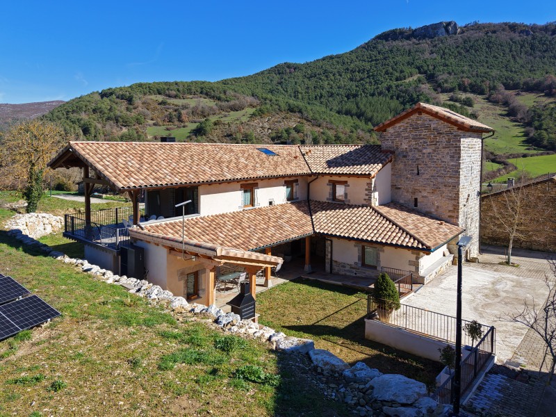 Casa Rural Torre Bárbara II en Urricelqui, Navarra. Distribuida en dos plantas, combina espacios amplios y luminosos con detalles tradicionales que invitan al descanso y al disfrute.