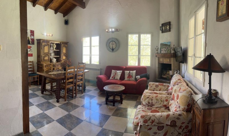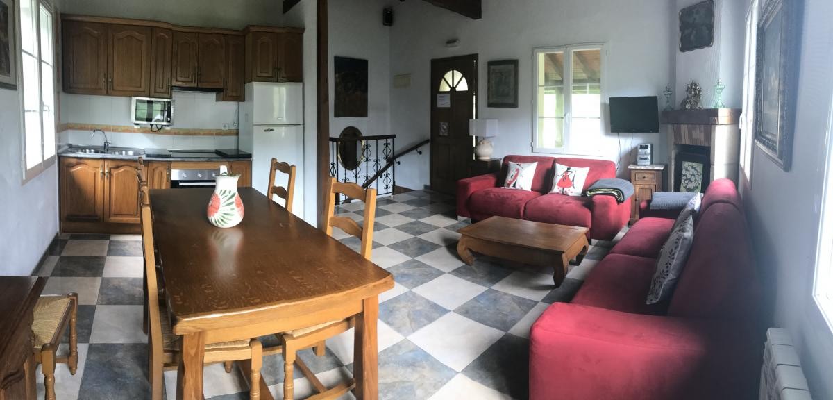 Casa tradicional. Dispone de 3 habitaciones dobles con baños incorporados, Salón-cocina, comedor con chimenea y TV. 1 aseo. Amplia terraza y porche cubierto con mobiliario y explendidas vistas al pirineo. Barbacoa. On parle français.