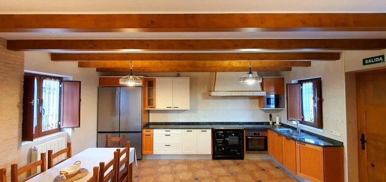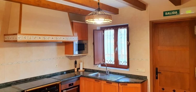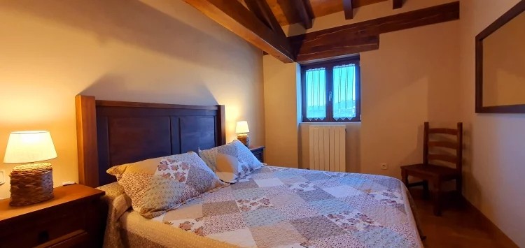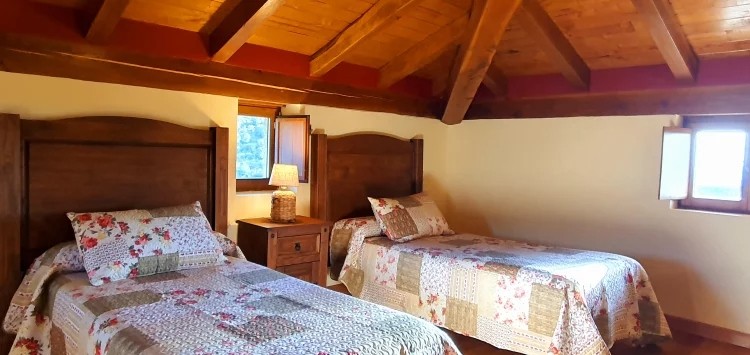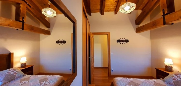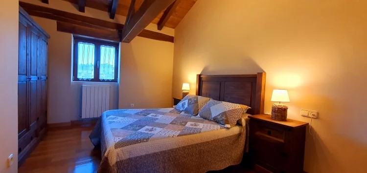 Tiene capacidad para 17 personas y cuenta con 5 habitaciones dobles (4 de matrimonio), una habitación cuádruple, 3 baños completos, cocina totalmente equipada, salón-comedor y una sala de estar con chimenea. En el exterior dispone de un amplio jardín privado con zona de barbacoas y sofás.